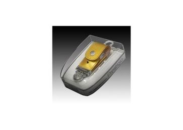 Кожаная флешка золотистого цвета в подарочной упаковке None