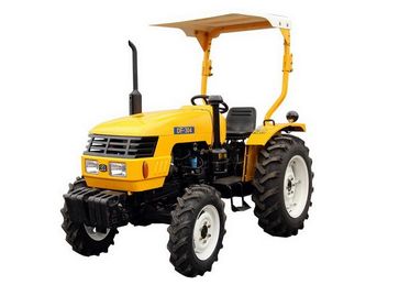 Полноприводной трактор, мощностью 30 л.с, с гидроусилителем руля, оснащен дизельным двигателем водяного охлаждения с вертикально расположенными цилиндрами, с обтекающим металлическим капотом. Трехточечная навесная система. Отдельно установлен узел сцепки для присоединения прицепных орудий. Электрооборудование однопроводное, 12 В: электростартер, электрогенератор с регулятором, фары передние и задняя. Технические характеристикиDONGFENG DF-304 с козырьком.