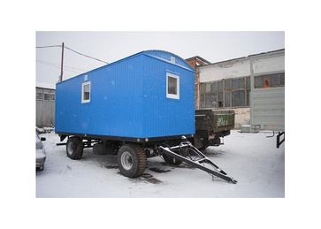 Здание мобильное представляет собой каркас – цельно металлический сварной конструкции из труб прямоугольного сечения. Каркас приварен к платформе прицепа шасси изготовленного из сортового проката. Снаружи стены и крыша обшиты оцинкованным крашеным профнастилом Н-10, днище – лист S1,5. Утепление: полистирольные плиты (ПСБС) и ИЗОЛОНПол - 150 мм.Стены - 100 мм.Потолок - 100 мм. Внутренняя отделка:Пол – Фанера-15мм (лист-рефленка для компоновок с сушильными шкафами и мастерских), покрыты утепленным линолеумом.Стены – ЛДСП 16мм (лист, оцинкованный S 0,8 мм для компоновок с сушильными шкафами и мастерских).Потолок – потолочные панели (ПВХ). Отопление – автономное, от масляных радиаторов. Освещение вагона производится с помощью светильников стационарной установки серии НПБ. Система вентиляцииЕстественная: через окно и канальные вентиляторы.Принудительная: через кондиционер. Прицеп шасси с поворотным кругом. Прицепы оборудованы двух проводной тормозной системой с колесными механизмами барабанного типа, стояночной тормозной системой с механическим ручным приводом. Имеются пневмо и электровыводы к тягачу, запасное колесо. Трап с поручнями в мобильном положении складывается под днищем. Шасси сертифицировано, оформляются ПСМ.
