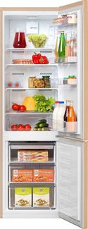 Холодильник Beko RCNK310KC0SB Общие характеристики:Количество камер: двухкамерныйРасположение морозильной камеры: снизуКоличество дверей6 2 штОбщий объем холодильника: 310 лПолезный объем холодильника: 276 лУровень шума: 40 дБКлиматический класс: SN-T Холодильная камера:Полезный объем холодильной камеры: 200 лСистема размораживания: No FrostКоличество полок: 4Материал полок: закаленное стеклоКоличество ящиков: 1Суперохлаждение: естьОсобенности холодильной камеры: Подставка для яиц. Дверные полки 4шт. Морозильная камера:Полезный объем морозильной камеры: 76 лСистема размораживания: No FrostКоличество ящиков: 3Мощность замораживания: 5 кг/сутОсобенности морозильной камеры: Лоток для замораживания мелких продуктов ICE BANK (пельменница). Форма для кубиков льда. Энергопотребление:Класс энергопотребления: A+Хранение при отключении питания: 18 чПотребление энергии: 282 кВт*ч/год Компрессор:Количество компрессоров: одинТип компрессора: стандартныйХладагент: R600a Особенности:Перевешиваемые двери: естьИндикация открытой двери: естьДополнительно: Антибактериальный уплотнитель дверей. Режим «Отпуск». Двухконтурная система охлаждения. Корпус:Цвет: бежевыйРазмеры (ШхВхГ): 54 х 184 х 60 смВес (нетто): 59 кгГарантия: 24 мес. На некоторые товары необходима предоплата Есть доставка.