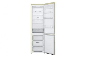Двухкамерный холодильник LG GA-B 509 CEUM Описание: Холодильник с технологией DoorCooling+Быстрое и равномерное охлаждениеПанель холодного воздуха в верхней части холодильника обеспечивает на 32% более быстрое и равномерное охлаждение, чтобы ваши продукты сохранялись свежими еще дольше.Общие данные:Размеры:высота (см): 203ширина (см): 59,5глубина (см): 68,2Общий объем/ Полезный объем:Холодильника (л): 419/384Холодильной камеры (вкл. зону свежести) (л): 292/277Морозильной камеры (л): 127/107Зона свежести: 45/44 лТип управления: электронныйКласс энергопотребления: A++Климатический класс: SN-ST (от +10°С до +38°С)Количество компрессоров: 1Годовое потребление энергии: 275 кВтчЦвет: бежевый (Skin Beige)Холодильное отделение:3 полки из закаленного стеклаПрозрачные дверные корзины: 4Металлическая окантовка полокЗона свежести FRESHConverter (-2°: Мясо/ 0°: Рыба / 3°: Овощи)Система многопоточного охлаждения Multi Air FlowСистема Nо Frost (Frost Free, Ноу Фрост)Светодиодная подсветкаЭкспресс-охлаждениеЯщик для овощей и фруктов с регулятором влажности FRESHBalancer и крышкой Moist Balance CrisperМеталлическая окантовка ящиковЛоток для яиц (1 x 10 яиц)Увеличенная винная полкаМорозильное отделение:Система Nо Frost (Frost Free, Ноу Фрост)Время сохранения холода при отключении электроэнергии: 16 чМощность замораживания: 12 кг/суткиЭкспресс заморозка3 ящикаМеталлическая окантовка ящиковЛоток для льдаДополнительная информация:Внешний кнопочный LED дисплейБлокировка дисплеяСигнал открытой двериEco FriendlyУровень шума (Дб): 36Умный инверторный компрессорИнтеллектуальная система диагностики Smart DiagnosisПеренавешиваемые двериАнтибактериальный дверной уплотнитель Bio ShieldУправление через Wi-Fi