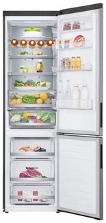 Холодильник LG GA-B509CMUM Общие данные:Размеры:высота (см): 203ширина (см): 59,5глубина (см): 68,2Общий объем/ Полезный объем:Холодильника (л): 419/384Холодильной камеры (вкл. зону свежести) (л): 292/277Морозильной камеры (л): 127/107Тип управления: электронныйКласс энергопотребления: A++Климатический класс: SN-ST (от +10°С до +38°С)Количество компрессоров: 1Годовое потребление энергии: 275 кВтчЦвет: серебристыйХолодильное отделение:4 полки из закаленного стеклаПрозрачные дверные корзины: 4Усовершенствованная складная полка теперь имеет два этапа сложения, что позволяет хранить крупные и габаритные продукты или блюдаМеталлическая окантовка полокЗона свежести FRESHConverter (-2°: Мясо/ 0°: Рыба / 3°: Овощи)Система многопоточного охлаждения Multi Air FlowСистема Nо Frost (Frost Free, Ноу Фрост)Светодиодная подсветкаМеталлическая задняя стенка Metal FreshЭкспресс-охлаждениеЯщик для овощей и фруктов с регулятором влажности FRESHBalancer и крышкой Moist Balance CrisperМеталлическая окантовка ящиковЛоток для яиц (1 x 10 яиц)Увеличенная винная полкаМорозильное отделение:Система Nо Frost (Frost Free, Ноу Фрост)Время хранения продуктов при отключении энергопитания (ч): 16Мощность замораживания: 12 кг/суткиЭкспресс заморозка2 полки3 ящикаМеталлическая окантовка ящиковЛоток для льдаДополнительная информация:Внешний кнопочный LED дисплейБлокировка дисплеяСигнал открытой двериУправление через Wi-FiВозможность управления через приложение LG ThinQУровень шума (Дб): 36Умный инверторный компрессорИнтеллектуальная система диагностики Smart DiagnosisАнтибактериальный дверной уплотнитель Bio ShieldС нулевым зазором холодильник LG можно ставить вплотную к стене и открывать дверь на 90°. Благодаря этому ящики выдвигаются беспр