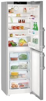 Холодильник LIEBHERR CNef 3915-21 001 Общие данные:Размеры:высота (см): 201,1ширина (см): 60глубина (см): 62,5 *- включая расстояние до стеныОбщий объем/ Полезный объем:Холодильника (л): 379/340Холодильной камеры (л): 230/221Морозильной камеры (л): 149/119Класс энергопотребления: A++Климатический класс: SN-T (от +10°С до +43°С)Количество компрессоров: 1 (инверторный)Годовое потребление энергии: 238 кВтч *Цвет: двери - нержавеющая сталь с покрытием SmartSteel, корпус - серебристыйХолодильное отделение:4 полки из закаленного стекла, из них 3 регулируемые1 складная полкаПолки на двери GlassLine ComfortКоличество полок на двери для хранения бутылок: 2Количество полок на двери для хранения консервов: 2Размораживание: автоматическоеСветодиодное потолочное освещениеАвтоматический режим SuperCoolЦиркуляционное охлаждениеКонтейнеры для фруктов и овощей с системой роликов: 2Полка для бутылокЛоток для яицМорозильное отделение:Система No Frost (Frost Free, Ноу Фрост)Время сохранения холода при отключении электроэнергии: 18 чМощность замораживания: 11 кг/суткиАвтоматическая функция SuperFrost: автоматическое отключение через 65 часов (макс.)Лоток для приготовления кубиков льдаМатериал полок: закаленное стеклоВыдвижные контейнеры: 4Выдвижные контейнеры FrostSafeVarioSpaceДополнительная информация:2,4-дюймовый сенсорный монохромный TFT-дисплейУправление: сенсорноеНезависимые холодильные контуры: 2Температурные зоны: 2Индикаторы температурыСигнализация неисправности: оптическая и акустическаяFrostControlСигнализация неплотно закрытой двери: оптическая и акустическаяФункция защиты от детейРучка со встроенным толкателемУровень шума: 39 дБСторона открывания двери: правая, перенавешиваемаяРолики для транспортировки сзади