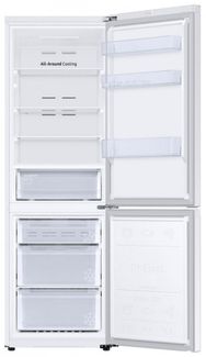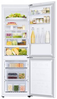 Холодильник Samsung RB34T670FWW/WT Описание: Отдельностоящий двухкамерный холодильник с нижним расположением морозильной камерыОбщие данные:Размеры:высота: 185,3 смширина: 59,5 смглубина: 65,8 смОбщий объем/ Полезный объем:Холодильника (л): 355/340Холодильной камеры (л): 231/228Морозильной камеры (л): 124/112Тип управления: электронныйКласс энергопотребления: A+Климатический класс: SN-T (от +10°С до +43°С)Количество компрессоров: 1Годовое потребление энергии: 300 кВтчЦвет: белыйХолодильное отделение:4 полки из стекла3 полочки на дверцеМногопоточная система охлаждения All-Around CoolingСистема No Frost (Frost Free, Ноу Фрост)Светодиодное освещениеБыстрое охлаждениеЯщик для овощей и фруктовКонтейнер для яицМорозильное отделение:Система No Frost (Frost Free, Ноу Фрост)Время работы при отключении электропитания (повышение температуры): 18 чМощность замораживания: 12 кг/суткиРежим мощной заморозки3 ящикаЛоток для льдаДополнительная информация:Внешний дисплейСигнал открытой дверцыУровень шума: 37 дБИнверторный компрессорПеренавешиваемые двериРучка: Утопленная