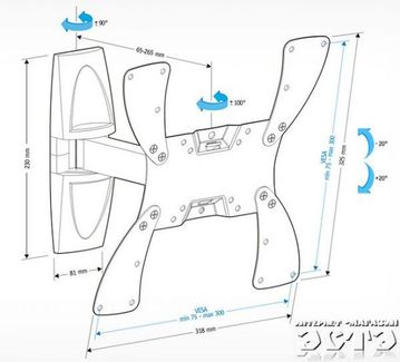 Кронштейн HOLDER LCDS-5020Описание:Диагональ экрана: 19″ – 40″Нагрузка: 30 кгКрепежные отверстия: 75х75, 100х100, 200х100, 200х200, 200х300, 300х300 ммУгол наклона: – 20°+20°Угол поворота: 100⁰Расстояние от стены: 65 - 265 мм