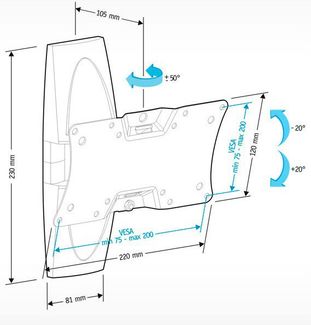 Кронштейн HOLDER LCDS-5062Описание:Диагональ экрана: 19″ – 32″Нагрузка: 30 кгКрепежные отверстия: 75х75, 100х100, 200х100 ммУгол наклона: – 20°+20°Угол поворота: 50⁰Расстояние от стены: 105 ммЦвет: черный На некоторые товары необходима предоплата Есть доставка.