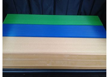 Размеры выпускаемой террасной доски: 165мм(ш)х30мм(в), стандартная длина 4м, возможна индивидуальная нарезка длины. Цветовые решения: венге, слоновая кость, кофе с молоком, синий, зеленый, возможны также индивидуальные решения.