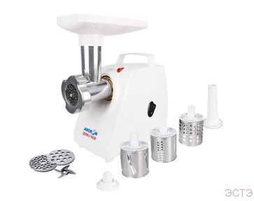 АКСИОН М 34.03 МясорубкаОписание: Мощность: номинальная - 230 Вт (максимальная - 1500 Вт) Производительность: 1.6 кг/мин Защита двигателя от перегрузки: есть Система реверса: есть Насадки: Насадки: насадка-терка, насадка для приготовления колбас, насадка для шинковки, насадка для кеббе, диск для фарша Диск для фарша: 2 в комплекте Насадка-терка: 2 в комплекте Насадка для шинковки: 1 в комплекте Особенности: Материал лотка: пластик Материал корпуса: пластик Можно мыть в посудомоечной машине: да Прорезиненные ножки: есть Отсек для хранения насадок: есть Отсек для хранения шнура: есть Длина сетевого шнура: 1.5 м Габариты и вес: Вес: 3.3 кг На некоторые товары необходима предоплата Есть доставка.