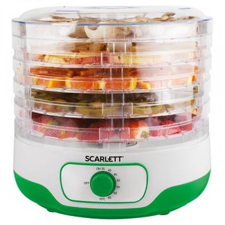 Сушилка Scarlett SC-FD421015 Описание:Идеальный выбор для тех, кто заботится о здоровом питании и любит вкусные кулинарные эксперименты. Ее яркий оригинальный дизайн с корпусом бело-зелёного цвета позволит прибору вписаться в любой интерьер. Модель предназначена для сушки ягод, фруктов, зелени и овощей, приготовления фруктовой пастилыМощность: 250 ВтРегулировка температуры: от 35 до 70 °СКоличество уровней: 5Количество поддонов: 5 штШирина поддона: 26 смВысота поддона: 3.5 смГлубина поддона: 26 смЦвет: зеленыйГарантия: 12 мес.