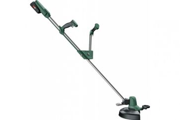 Триммер Bosch UniversalGrassCut 18 Общие характеристики:Тип: переносной триммерШирина скашивания: 26 смТравосборник: отсутствует Двигатель:Двигатель: электрическийРабота от аккумулятора: даТип аккумулятора: Li-IonНапряжение аккумулятора: 18 ВЕмкость аккумулятора: 2 А·чАккумулятор в комплекте: естьРасположение двигателя: нижнее Конструкция:Ручка: складная с регулируемой высотойМатериал деки: пластикМатериал корпуса: пластикШтанга: прямаяФорма рукоятки: V-образнаяКолеса: отсутствуют Дополнительная информация:Комплектация: леска (1.6 мм),Особенности: телескопическая штанга; дополнительные ролики; защитная скоба; режущая система IntelliFEED; функция наклона и обработки краев 180°; комплект поставки: 1 аккумуляторный блок PBA 18V 2.0Ah W-B; зарядное устройство AL 1815 CV; время зарядки аккумулятора - 84 мин Габариты:Вес: 2.7 кгГарантийный срок: 24 мес. На некоторые товары необходима предоплата Есть доставка.