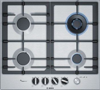 Газовая варочная поверхность Bosch PCH6A5M95R Описание: Общие данные:Габариты: 5,3х58,2х52 смГабариты ниши для встраивания: -х56х48-49 смРабочая поверхность: нержавеющая стальКоличество конфорок: 4Мощность:Задняя левая: Стандартная конфорка 1.75 кВтЗадняя правая: Конфорка WOK 3.5 кВтПередняя левая: Стандартная конфорка 1.75 кВтПередняя правая: Экономичная конфорка 1 кВтАвтоматический электроподжигТермоэлектрическая защита от утечки газаУправление:Поворотные переключателиФункция FlameSelect: для точной регулировки пламени на 9 разных ступенях.Главный выключатель: выключение всей варочной поверхности одним нажатием кнопки.Дополнительная информация:Составная чугунная решетка для посудыКрышка горелки Simmer CapМинимальная толщина столешницы 30 ммЗаводская настройка на газ (20 мбар)Форсунки для баллонного газа в комплектеКабель длиной 100 см