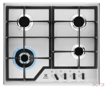 Встраиваемая газовая варочная панель Electrolux GPE 363 MX Описание: Газовая варочная поверхностьОбщие данные:Количество конфорок: 4Горелка 4K Wok Burner с несколькими рассекателями обеспечивает более мощное пламяГабариты для встраивания: 5.1x56x48 смУправление:Регуляторы мощности нагреваЭлектроподжиг с помощью поворотных регуляторовПодача газа прекращается при погасании пламениДополнительная информация:Цвет ручек: черный, нержавеющая стальЦвет: нержавеющая стальГаз-контрольЧугунные держатели для посуды