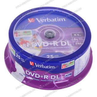 - Диск Verbatim DVD+R 8.5GB 8X Double Layer кейкбокс (25) по выгодной цене 70 р. руб.;