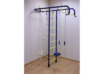 Устанавливается враспор; Порошковое покрытие; Возможен вариант ступенек с покрытием ПВХ; Навесное оборудование: канат, кольца, лестница вер., трапеция; Основные технические характеристики:Длина потолочной рамы (без закругления) 1500 (1270) ммОтступ от стены (без закругления) 750 (530) ммШирина потолочной рамы (с турником) 538 (890) ммВынос турника 700 ммСтандартная высота 2250 – 2850 ммНестандартная высота 2850 – 3400 мм, 3200 – 3700 ммШаг ступеней 260 ммМаксимальная нагрузка 100 кг