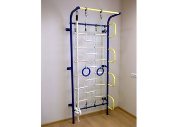 В комплектацию входят: канат, кольца, турник-перекладина, шведская стенка с фигурными ступенями, комбинированная лестница;Крепится к стене; Порошковое покрытие; Основные технические характеристики:Длина 560 ммОтступ от стены 136 ммШирина потолочной рамы 840 ммВынос турника 385 ммВысота 2170 ммШаг ступеней 260 ммШирина ступеньки 280 ммМаксимальная нагрузка 100 кг