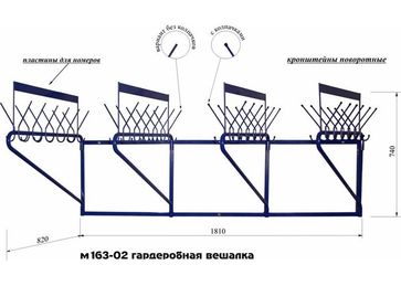 вешалка настенная М163-02 на 48 крючков крепится к стене прои помощи анкерных болтов габариты 1810520740мм