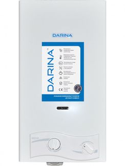 Водонагреватель Darina Aqua 11 B NG Общие параметры:Тип: водонагреватель газовыйМодель: Darina Aqua 11 B NGВид: проточныйТип подключения: баллон со сжиженным газом (опционально), прямое подключение в газопроводОсновной цвет: белый Основные характеристики:Материал корпуса: эмалированная стальТип камеры сгорания: открытаяОбъем бака: 11 лМаксимальное давление воды: 10 атмМинимальное давление воды :0.2 атмМаксимальная температура нагрева воды (C): 65°Индикация температуры: нетРасход природного газа: 1.72 м³/чРасход сжиженного газа: 2.31 кг/чМаксимальное давление газа: 10.5 мбарМинимальное давление газа: 1.3 мбар Питание и производительность:Производительность: 11 л/минНоминальная мощность: 18.9 кВтПотребляемая мощность в спящем режиме: нетМощность в выключенном режиме: нетМодель потребления: от батарейки Комфорт:Управление: механическоеРозжиг: автоматическийИндикация включения: нетИндикация нагрева: нетВход газа: 1/2"Вход воды: 1/2"Подключение системы дымоудаления: 110 ммКрепежные элементы в комплекте: нет Безопасность:Газ-контроль: естьОграничение температуры нагрева: естьЗащита от перегрева: естьСамодиагностика: нет Особенности:Способ установки: настенныйДисплей: нетТермометр: нет Габариты и вес:Ширина: 31.4 смВысота: 59.2 смГлубина: 24.5 смВес: 11.1 кг На некоторые товары необходима предоплата Есть доставка.