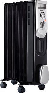 Масляный радиатор SAKURA SA-0337B Характеристики:Тип: масляный радиаторРегулировка мощности: даУровни мощности: 1500 ВтПлощадь обогрева: 10 кв.мНапряжение: 220/230 ВКоличество секций: 7Вентилятор: нет Конструкция:Термостат: даУправление: механическоеВарианты монтажа: напольный Особенности:Защитные функции: отключение при перегревеКаминный эффект: даУдобство использования: отделение для шнура, колесики/ручкаДополнительная информация: длина шнура питания: 1.8 м Габариты и вес:Габариты (ШхВхТ): 36.4х58х15 см На некоторые товары необходима предоплата Есть доставка.