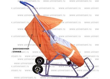 Санки-коляски с откидной спинкой с 2 большими колесами.