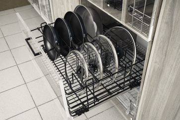 - Корзина выкатная UMM для хранения сковородок и крышек, в нижнюю базу 600мм, без направляющих, черный (15.09.03.4.0.1) в каталоге Корзины для хранения в Нижнем Новгороде;