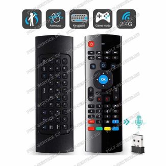 Пульт дистанционного управления – устройство 2 в 1, т.е. оно совмещает себе клавиатуру и гироскопическую мышь, поскольку его можно подключить к различным устройствам – это смарт ТВ приставки, смарт телевизоры, ноутбуки/компьютеры, проекторы и другие интеллектуальные устройства. Пульт работает как лазерная указка с помощью встроенного в него гироскопа. Удобен, чтобы играть в игры. Чтобы подключить пульт необходимо вставить USB-приемник, который идет в комплекте в устройство, к которому оно подключается. Никаких драйверов не понадобится – пульт Air Mouse автоматически определяется как клавиатура. Пульт работает от двух батареек ААA (в комплекте нет). Рабочие характеристики Скорость передачи данных 1Mbps Рабочая частота 2400.0MHz - 2483.5MHz Выходная мощность -18dBm - 0dBm 6 осей (3 оси гироскопа + 3 оси акселерометра), игровая панель, ввод с клавиатуры (русский язык) Рабочее расстояние до 10 метров Программирование пульта Голосовое управление Размер: 175.51.5см Комплект поставки Air mouse USB - приемник Инструкция на английском Программирование функциональных кнопок ИК пульта.