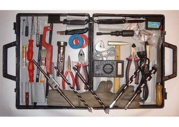 Комплектация набора инструмента монтера связиста МТС-1-О-01.02Б3 15 изделий: 1 Контейнер "Дипломат" вст ПВХ "ДПВВ-300" 2 Отвертка СМР-123 пр. шлиц 90мм 3 Отвертка пр. шлиц 155мм 4 Отвертка пр. шлиц 190мм 5 Отвертка крест 190мм 6 Плоскогубцы комб 1000В 160мм 7 Кусачки боков 1000В 160мм 8 Длинногубцы прямые 140мм 9 Молоток 200гр 10 Индикатор напряжения 11 Мультиметр цифровой 830 12 Перчатки резиновые диэл1000В 13 Бурав по дереву 10х230мм 14 Бурав по дереву 12х230мм 15 Бурав по дереву 16х230мм