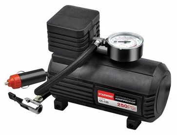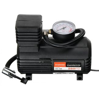 Автомобильный компрессор STARWIND CC-120 Описание: Общие характеристики:Тип:поршневойПроизводительность на входе:15 л/минМаксимальное давление:17 атмТип подключения:в гнездо прикуривателяНапряжение:12 ВМаксимальный ток потребления:12 АДлина кабеля питания:3 мДлина воздушного шланга:0.45 мМанометр:аналоговыйФункции:защита от короткого замыканияКоличество переходников:3 шт. На некоторые товары необходима предоплата Есть доставка.