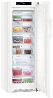 Морозильная камера Liebherr GN 3735-21 001 Размеры:высота: 165 смширина: 60 смглубина: 66.5 см *Общий объем: 275 лПолезный объем: 230 лТип управления: электронныйКласс энергопотребления: A++ *Климатический класс: SN-T (от +10°С до +43°С)Годовое потребление энергии: 154 кВтч/год *Цвет: белыйМорозильное отделение:Система Nо Frost (Frost Free, Ноу Фрост)Автономное сохранение холода: 20 чМощность замораживания: 17 кг/cуткиСветодиодное освещениеАвтоматическая функция SuperFrost: автоматическое отключение через 65 часов (макс.)Выдвижные контейнеры: 7Материал полок: закаленное стеклоСистема VarioSpaceСистема FrostSafe с прозрачной фронтальной частьюАккумулятор холода: 1Лоток для льдаДополнительная информация:Диапазон температур морозильной камеры: от -15°C до -28°C2,4-дюймовый сенсорный монохромный TFT-дисплейУправление: сенсорноеИндикатор температурыСигнализация неисправности: оптическая и акустическаяFrostControlСигнализация открытой двери: оптическая и акустическаяЗащита от детейУровень шума: 38 дБSmartGrid-readyМожет подключаться к сети устройств (поддерживает SmartDevice)SmartDeviceBox: возможность дополнительной установкиРучка со встроенным толкателемСторона открывания двери: правая, перенавешиваемаяРолики для транспортировки сзадиВозможность установить прибор вплотную к стене или в готовую нишу На некоторые товары необходима предоплата Есть доставка.