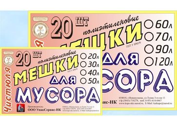 Мешки для мусора из ПЭ низкого давления (ПНД) в ассортименте (20л, 30л, 40л, 50л, 60л, 70л, 90л, 120л). Победитель конкурса "Лучшие товары и услуги Сибири GEMMA 2011"