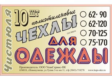 - ПЭ чехлы для ОДЕЖДЫ 75*170 (10шт) в каталоге Пакеты в Новокузнецке;