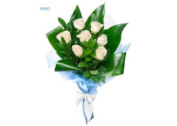 Состав:Лента 1 шт, лист аспидистры 6 шт, органза 1 шт, роза 60 см 7 шт, рускус 5 шт Размер:Средний (25-30 см)