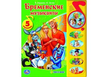 [Артикул: 402-3-2581032] "УМКА". Книжка игрушка: Бременские Музыканты 5 звуковых кнопок. Формат: 195Х230ММ. Объем 10 страниц. None Возможен самовывоз. Есть доставка. Доставка: 300.0RUR