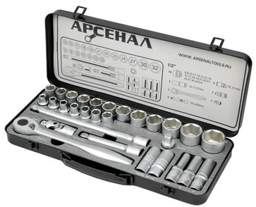 Арсенал Набор инструмента 29 предметов (К) 1/2" в металлическом кейсе 8144690. Сталь, из которой изготовлен инструмент, легирована хромом и ванадием с нанесением никелевого покрытия. Особо прочный кейс из толстой листовой стали с тройным контуром штамповки. Ламинированные грязе- и маслостойкие ложементы. Наборы инструментов Арсенал имеют пожизненную гарантию.