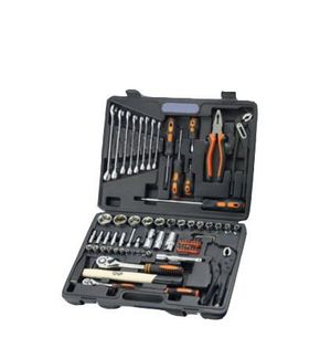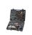 торцевые головки (13 шт.); 72-зубцовая реверсивная рукоятка; удлинитель; карданный шарнир; свечная торцевая головка. None