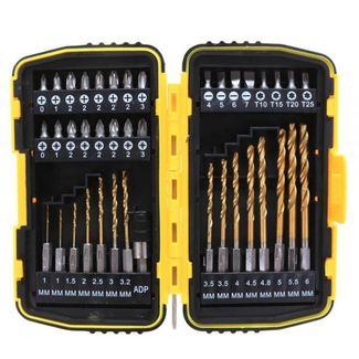 Универсальный набор бит и сверел с шестигранным хвостовиком и битодержателем в комплекте.