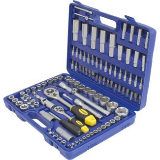 Слесарно-монтажный набор 108 предметов Калибр НСМ-108 является многофункциональным приспособлением для проведения столярных или слесарных работ. Все инструменты выполнены из хромванадиевой стали со специальным покрытием для защиты от коррозии. Пластиковый кейс с ячейками под каждый элемент набора. Квадрат 1/2" и 1/4". None