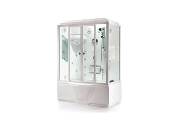 Душевая кабина с паром B103A (L), левый разворот, с массажной ванной, одна большая трехсторонняя панели для ванной, демонтируются при необходимости. Комплектация: крыша система подачи пара система подачи и перечключения горячей и холодной воды верхний душ ручной душ на телескопической стойке гидромассажные форсунки спины массажер ног компьютеризированная панель управления ЖК Дисплей дистанционное управление подключение к CD и FM радио система сигнализации вентилятор микрофон для ответа телефонных звонков конференц связь освещение стекло 6 мм Гидромассажная ванна с компьютеризированной панелью управления( приспосабливаемый серфинговый массаж, интеллектуальное обнаружение уровня воды, красочный подводный свет, слив - перелив), одна большая трехсторонняя панель. None Есть доставка.