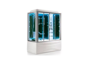 Душевая кабина с паром B613A(R) S правый разворот, двухместная, с массажной ванной (одна съемная фронтальная панель и одна боковая панель), специальное повышенной прочности стекло. Комплектация: крыша система подачи пара система подачи и перечключения горячей и холодной воды верхний душ ручной душ на телескопической стойке гидромассажные форсунки спины массажер ног компьютерная панель управления ЖК Дисплей дистанционное управление подключение к CD и FM радио система сигнализации и вентилятор микрофон для ответа телефонных звонков конференц связь освещение стекло толщиной 6 мм Гидромассажная ванна с компьютеризированной панелью управления( Каскадный массаж (водопад), мелкий массаж, красочный подводный свет, интеллектуальное обнаружение уровня воды). None Есть доставка.
