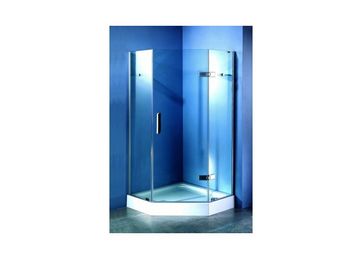Полированный хромированный многогранный профиль,закаленное безопасное прозрачное стекло 10 мм, распашной механизм двери, удобная хромированная ручка и хромированные петли. None Есть доставка.