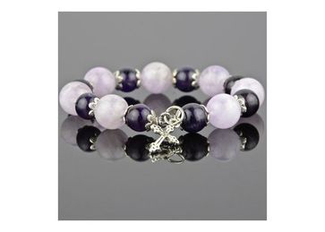 [Артикул: 10202-1-2543265] Авторский браслет из аметиста, роз.кварца. Диаметр бусин 10-12 мм. None