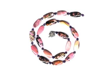 Бусы из крупных натуральных родонитов и аметистовых шариков