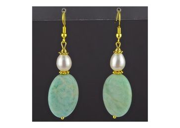 [Артикул: 10202-1-2707983] Серьги с амазонитом, жемчугом. Металл - ювелирный сплав. Длина подвески 44 мм. None Возможен самовывоз. Есть доставка. Доставка: 200.0RUR