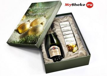 Закажите Набор праздничный с шампанским и вашим логотипом у компании MyShoko.ru Фабрика индивидуального подарочного шоколада на все случаи жизни в Новосибирске на портале Alloy: