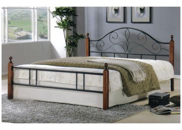 Кровать односпальная (90*200), дерево гевея, металл ковка, цвет: темный дуб.