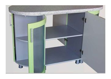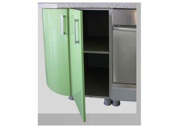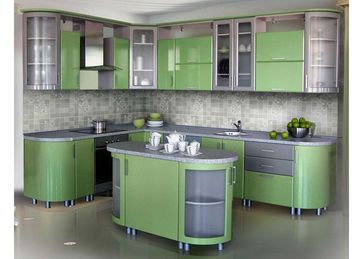 Описание кухонного гарнитура Производитель: Мебель-Комплект Вид: Модульные Фрезеровка: мыло Фасад: салатовый мет./серый мет. Каркас: серый Столешница: Гранит Сардинский