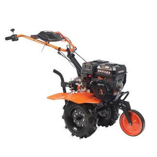 Это самый мнгогофункциональный мотокультиватор с двигателем 7 л.с. Укомплектован фрезами и пневматическими колесами. Установлена ручка с возможностью регулировки и поворота в разных плоскостях. Переключение скоростей осуществляется через коробку передач, а включение пониженной или повышенной передачи можно производить перекидыванием ремня с одной проточки шкива на другую: 4 вперед, 2 назад. Уже установленный на мотокультиватор трехручейковый шкив дает возможность подключать косилку и снегоуборщик, а мощный прицепной узел является самым распространенным в России и дает возможность устанавливать различное навесное оборудование, включая тележку. Отдельно можете приобрести и установить роторную косилку, шнекороторный снегоотбрасыватель, тележку, плуг, окучник, картофелевыкапыватель, а если установить гусеничную приставку, то получится мотобуксировщик для движения по глубокому снегу и бездорожью. None