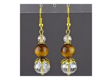 Бусики-Колечки Серьги Тигровый глаз, хрусталь "Мадлена" арт. с2488