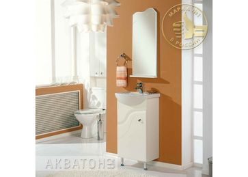 - Акватон Мебель для ванной Колибри 45 (белый) - Набор мебели стандартный (зеркало, светильник, тумба-умывальник, раковина) в каталоге Мебель для ванных комнат в Новосибирске;