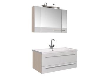 Aquanet Мебель для ванной Нота 100 камерино (светлый дуб фасад белый) - Набор мебели стандартный (зеркало, светильник, раковина-столешница, тумба)
