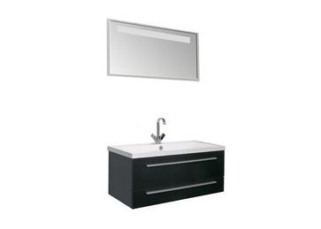 Aquanet Мебель для ванной Нота 90 алюминий (черный глянец) - Набор мебели стандартный (зеркало, раковина-столешница, тумба)